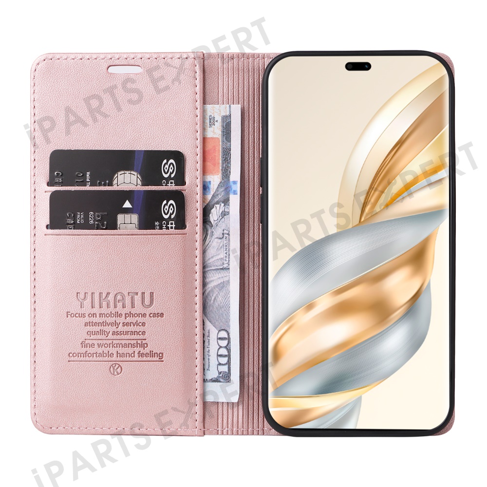 YIKATU YK-001 For Honor X60 Pro 5G / Magic7 Lite 5G / X9c 5G Wallet Case Card Slot Stand Leather Phone Cover - Rose Gold