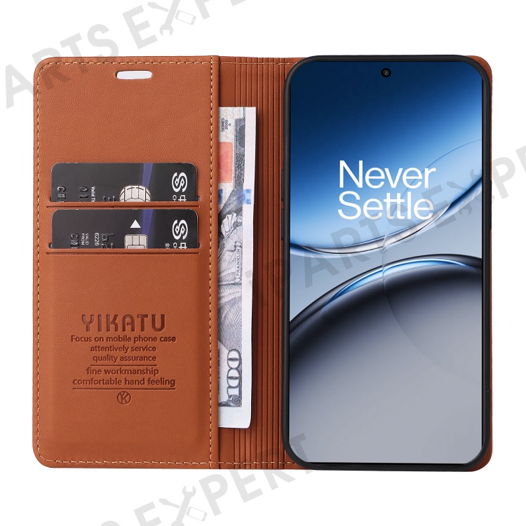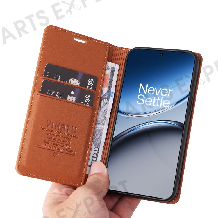 YIKATU YK-001 For OnePlus Nord 4 Case Stand Leather Phone Cover Strong Magnetic Closure - Brown