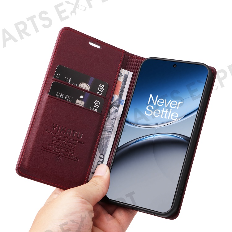 YIKATU YK-001 For OnePlus Nord 4 Case Stand Leather Phone Cover Strong Magnetic Closure - Wine Red