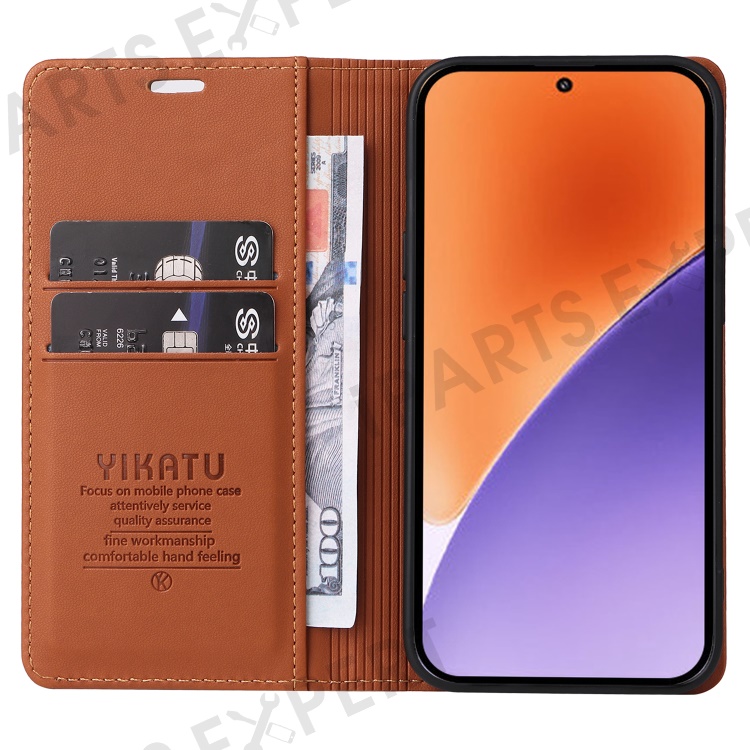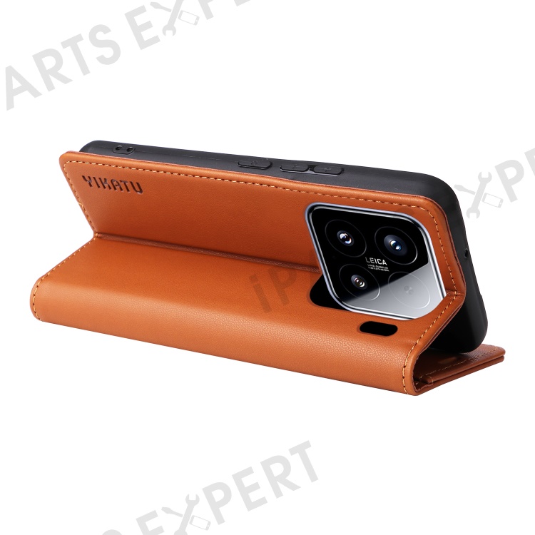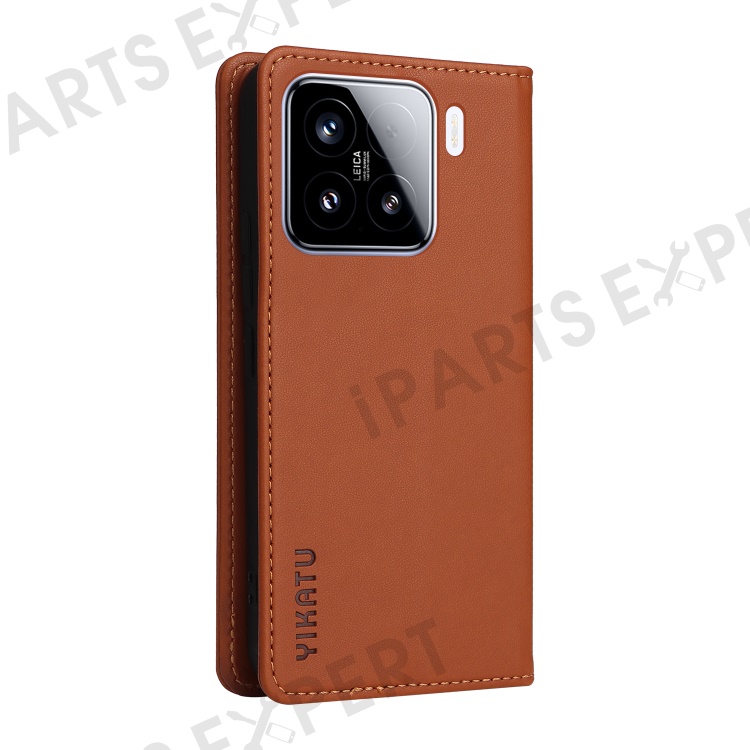 YIKATU YK-001 For Xiaomi 15 Case Stand Leather Phone Cover Strong Magnetic Closure - Brown