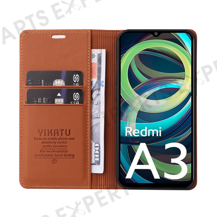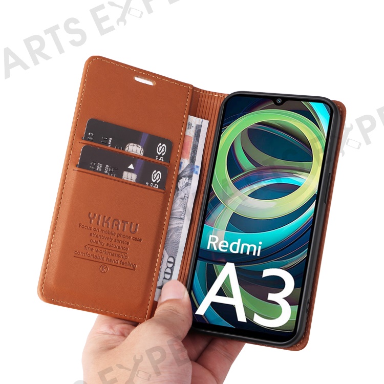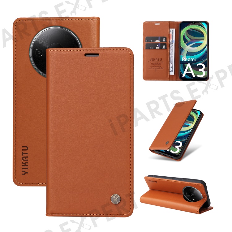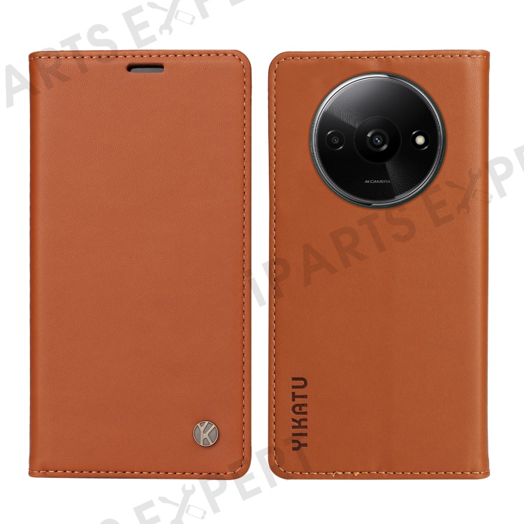 YIKATU YK-001 For Xiaomi Redmi A3 4G / Poco C61 4G Case Hidden Magnetic Adsorption Leather Phone Cover - Brown