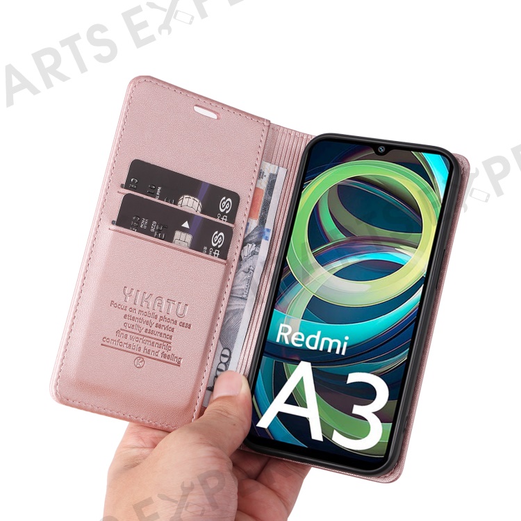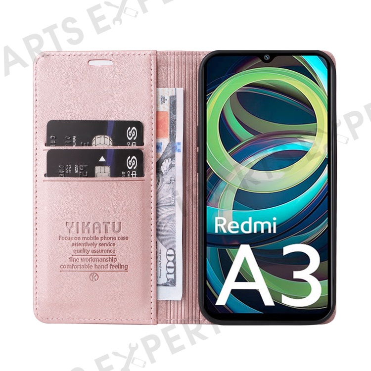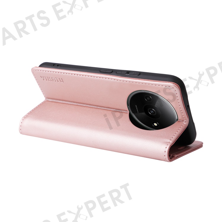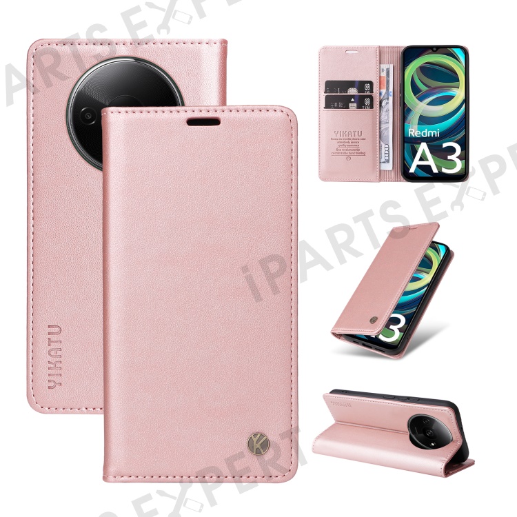 YIKATU YK-001 For Xiaomi Redmi A3 4G / Poco C61 4G Case Hidden Magnetic Adsorption Leather Phone Cover - Rose Gold