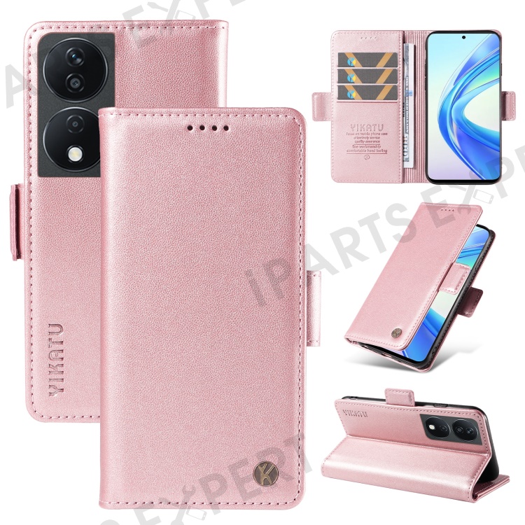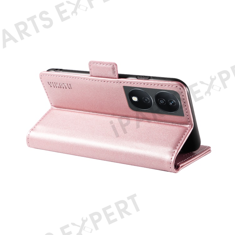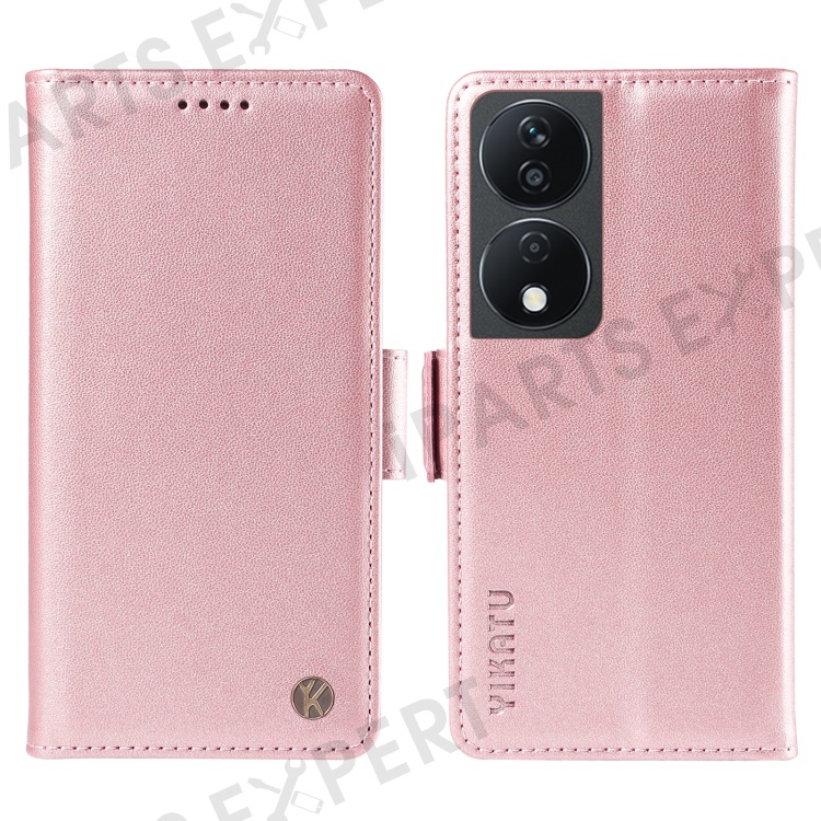 YIKATU YK-003 For Honor X7b 4G / 90 Smart Case Leather Side Magnetic Clasp Phone Stand Cover - Rose Gold