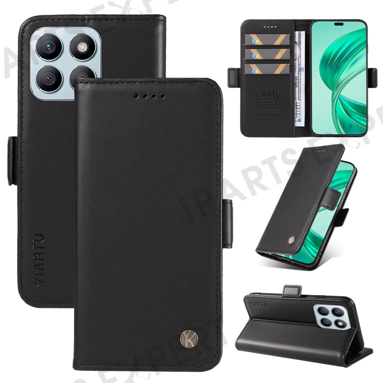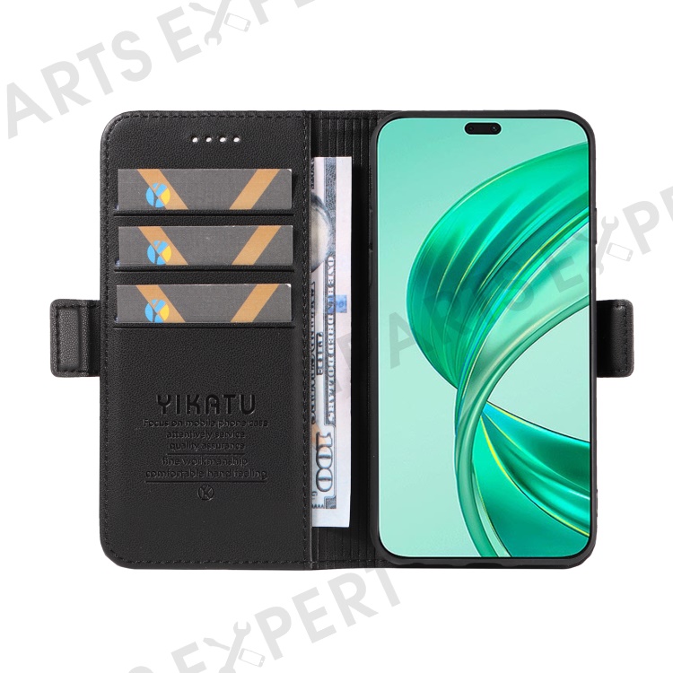 YIKATU YK-003 For Honor X8b 4G Phone Case Side Magnetic Clasp Wallet Cover - Black