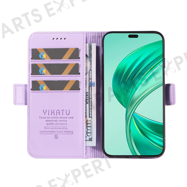 YIKATU YK-003 For Honor X8b 4G Phone Case Side Magnetic Clasp Wallet Cover - Light Purple
