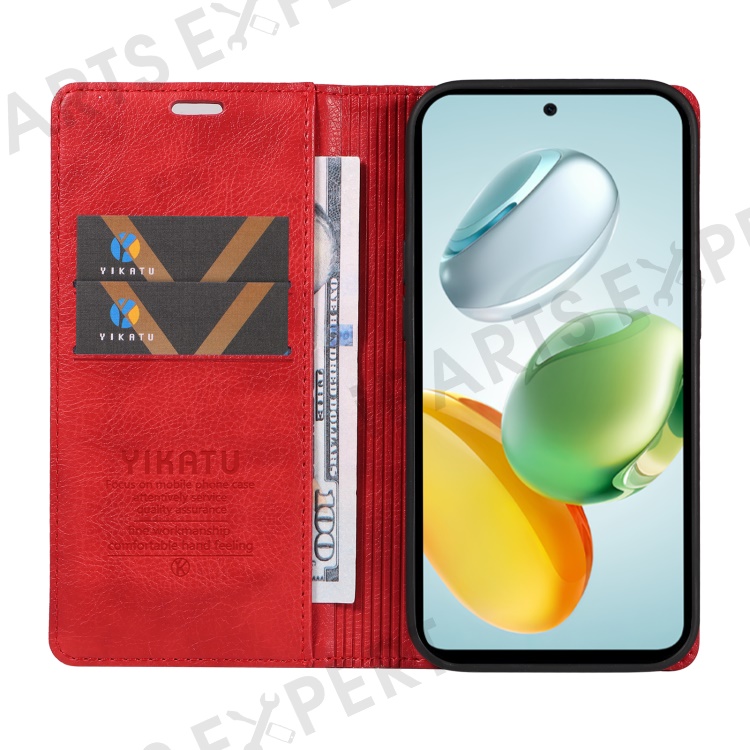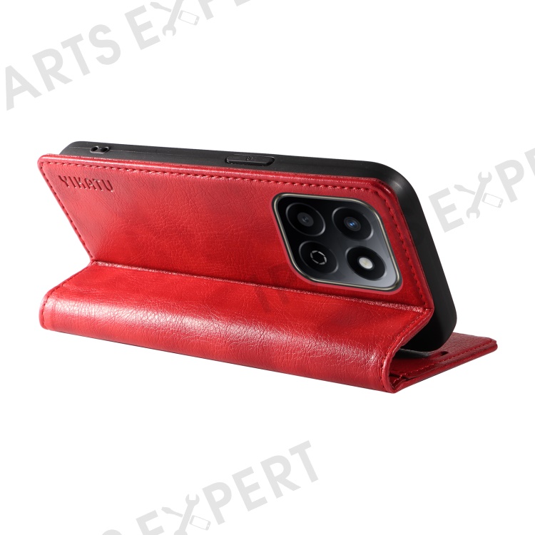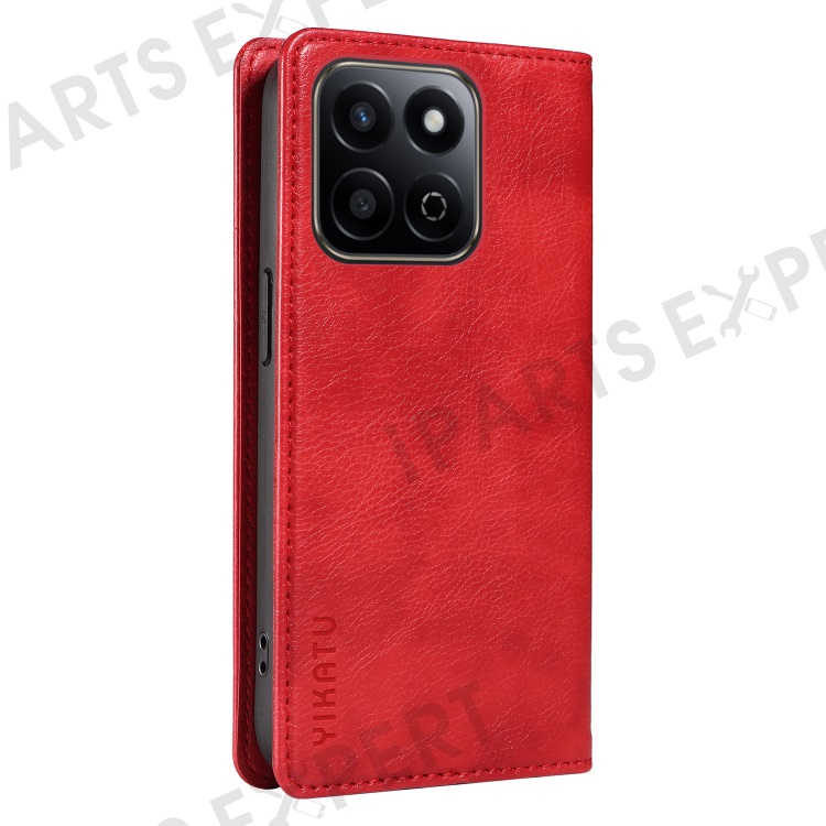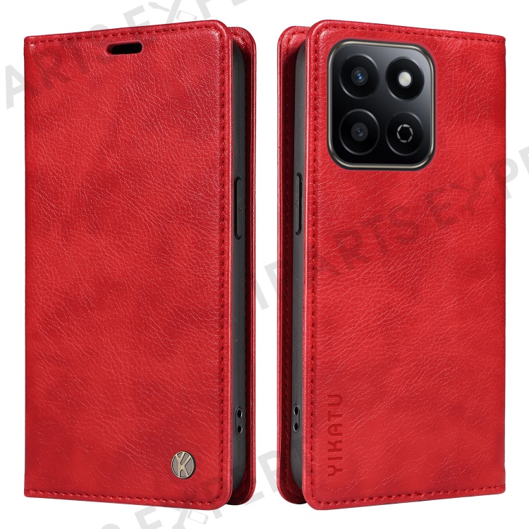 YIKATU YK-006 For Honor Play 60 Plus 5G / Play 9T / X7c 4G / 200 Smart 5G Case Magnetic Closure Leather Phone Cover Litchi Texture - Red