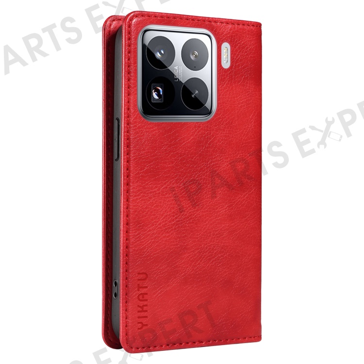 YIKATU YK-006 For Xiaomi 15 Pro Case Magnetic Closure Leather Phone Cover Litchi Texture - Red