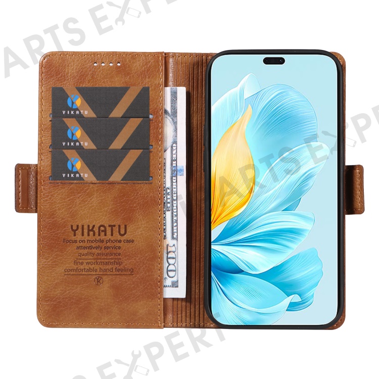 YIKATU YK-007 For Honor 200 Lite Case Litchi Texture Magnetic Clasp Phone Cover - Brown