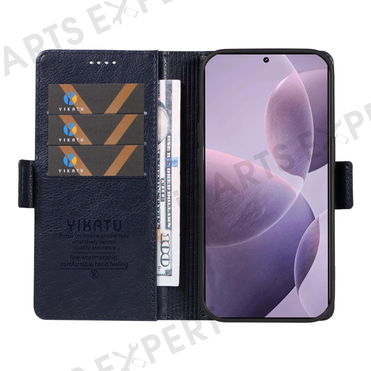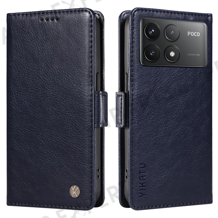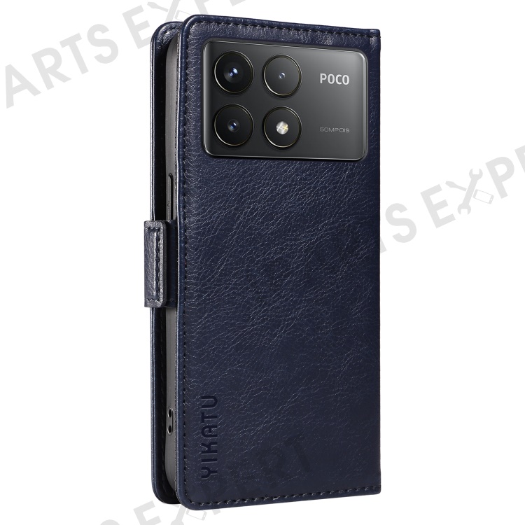 YIKATU YK-007 For Xiaomi Poco F6 Pro 5G / Redmi K70 5G / K70 Pro 5G Leather Case Phone Wallet Cover - Navy Blue