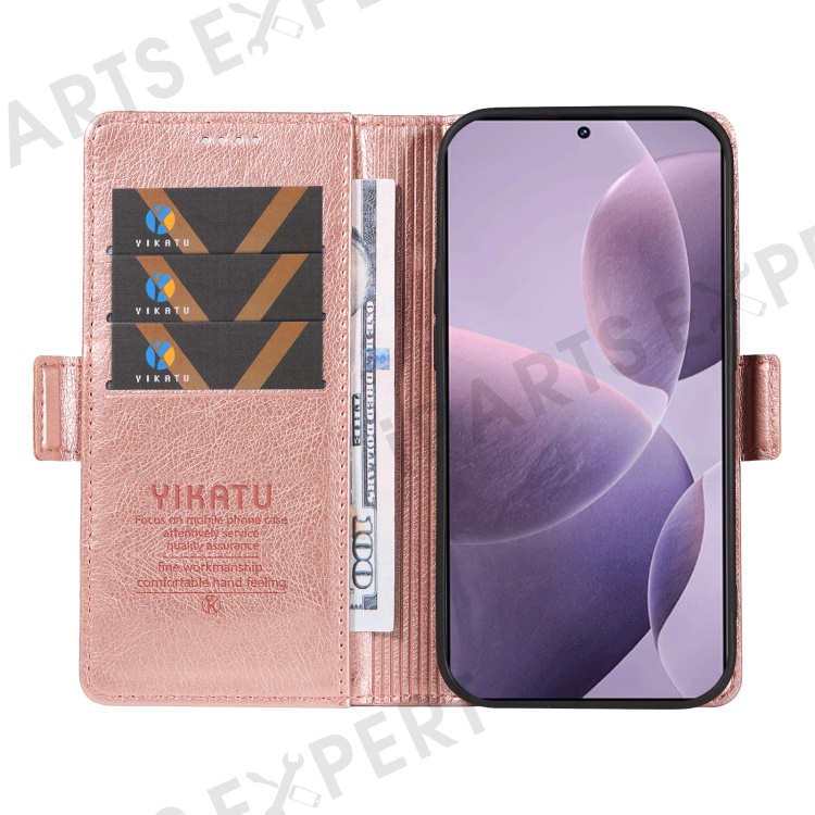YIKATU YK-007 For Xiaomi Poco F6 Pro 5G / Redmi K70 5G / K70 Pro 5G Leather Case Phone Wallet Cover - Rose Gold