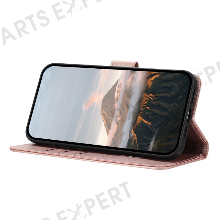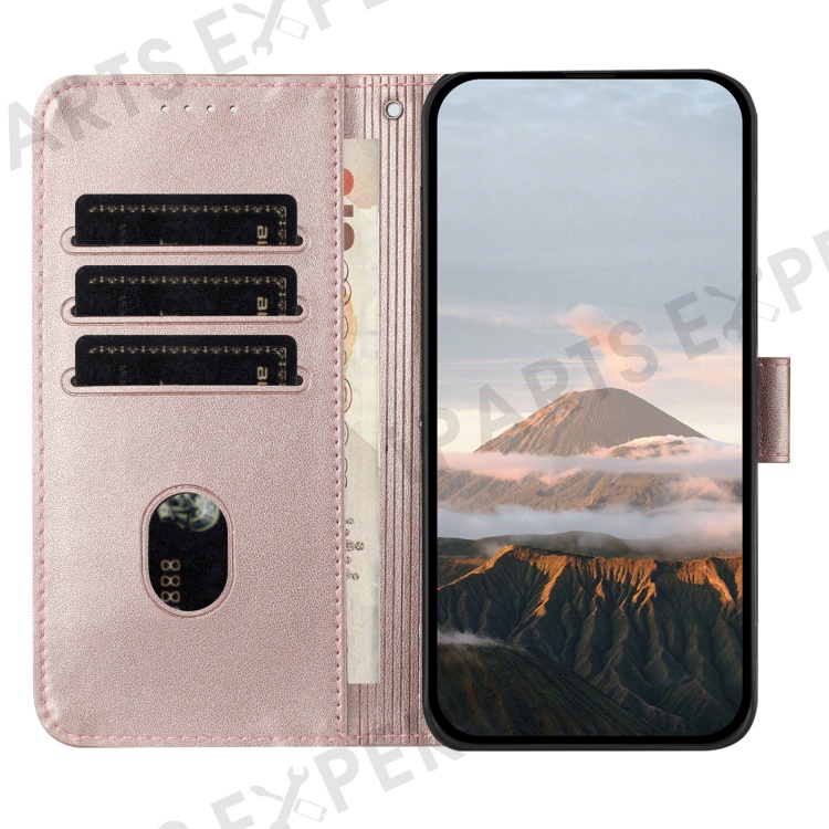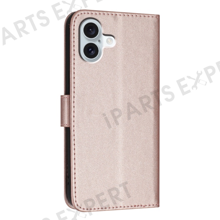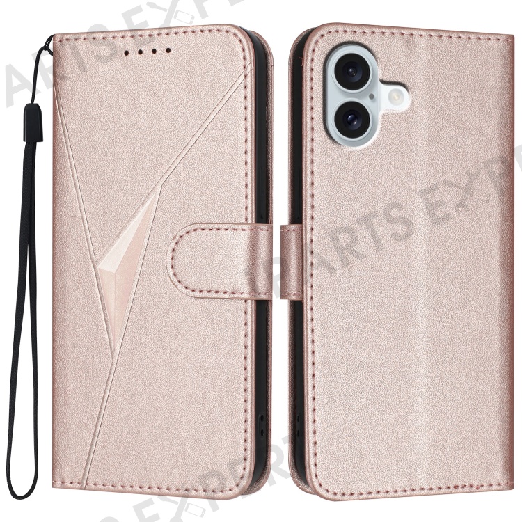 YX0090 For iPhone 16 Plus Case Triangle Imprint Leather Phone Cover with Lanyard - Rose Gold