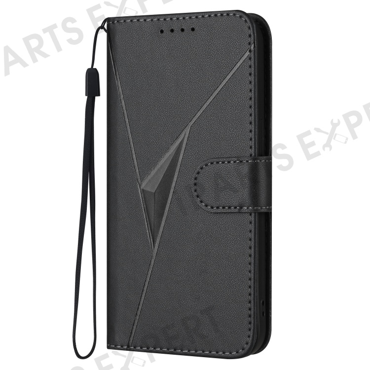 YX0090 For Samsung Galaxy S25+ Case Triangle Imprint Leather Phone Cover with Lanyard - Black