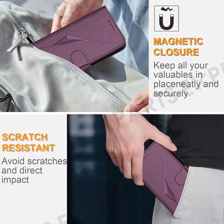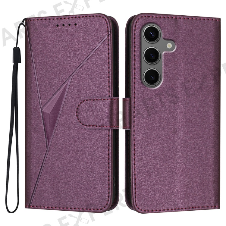 YX0090 For Samsung Galaxy S25+ Case Triangle Imprint Leather Phone Cover with Lanyard - Dark Purple