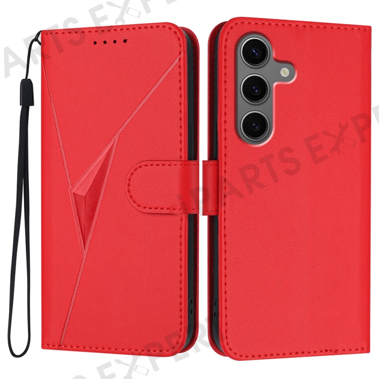 YX0090 For Samsung Galaxy S25+ Case Triangle Imprint Leather Phone Cover with Lanyard - Red