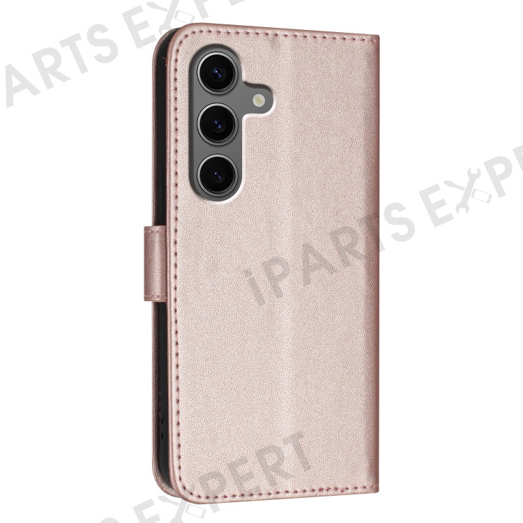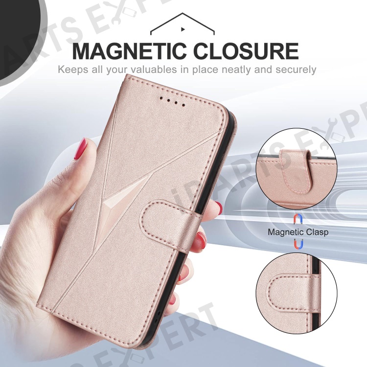 YX0090 For Samsung Galaxy S25+ Case Triangle Imprint Leather Phone Cover with Lanyard - Rose Gold