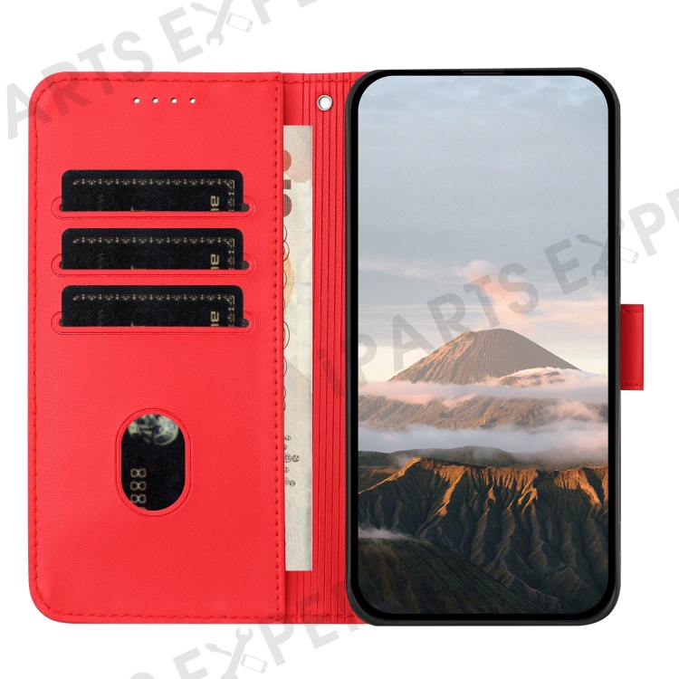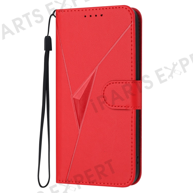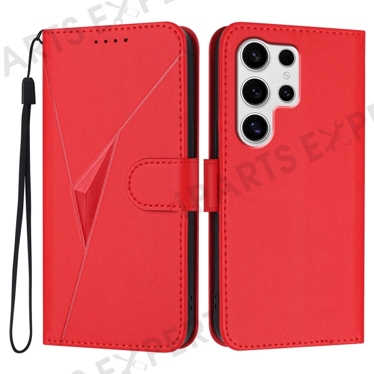 YX0090 For Samsung Galaxy S25 Ultra Case Triangle Imprint Leather Phone Cover with Lanyard - Red