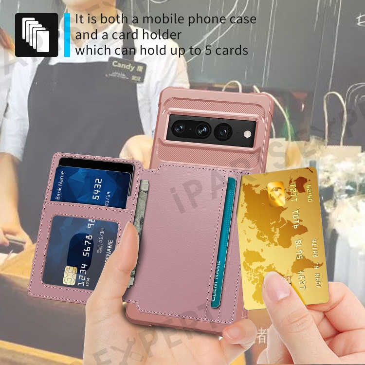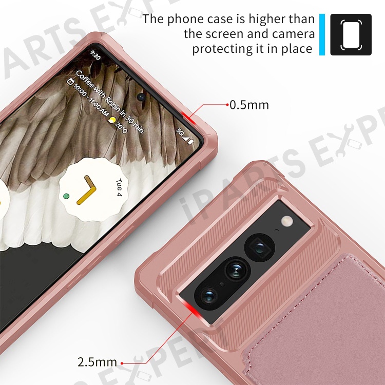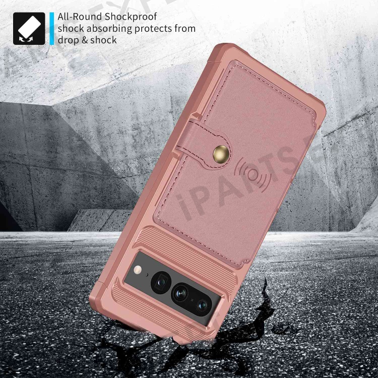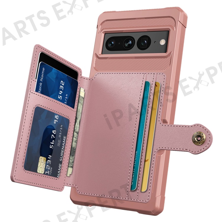 ZM03 for Google Pixel 7 Pro 5G Shockproof Phone Case Kickstand Card Holder Phone Back Cover with Magnetic Metal Sheet - Pink