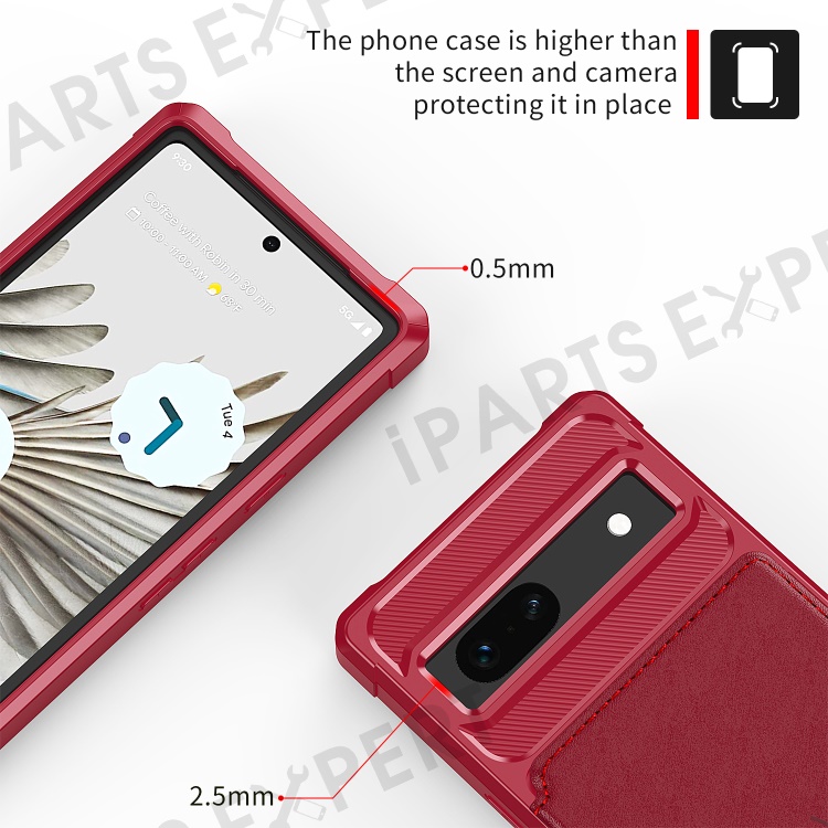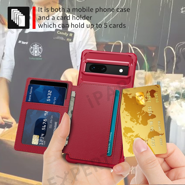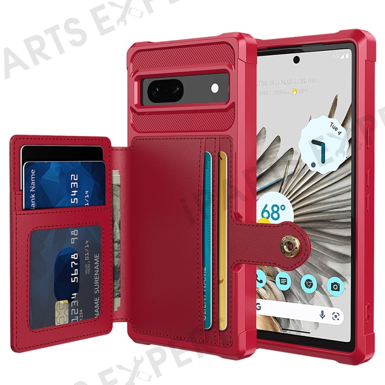 ZM03 For Google Pixel 7a Case PU Leather Coated TPU Card Holder Wallet Phone Cover - Red