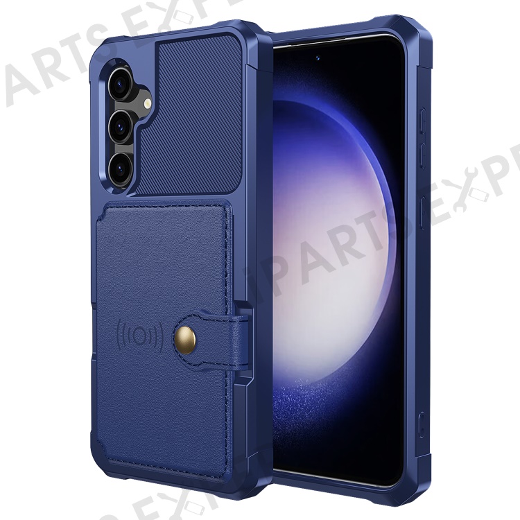 ZM03 For Samsung Galaxy S23 FE Card Holder Kickstand Phone Case PU Leather Coated TPU Back Cover - Blue