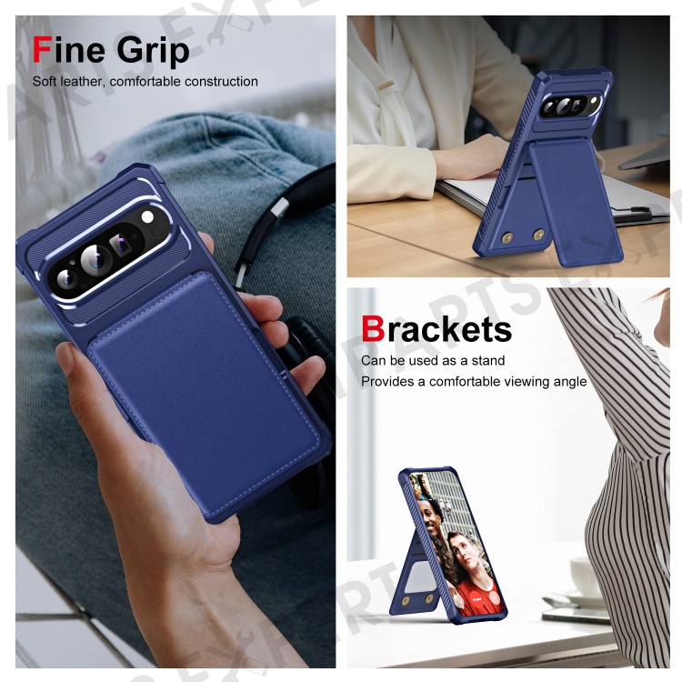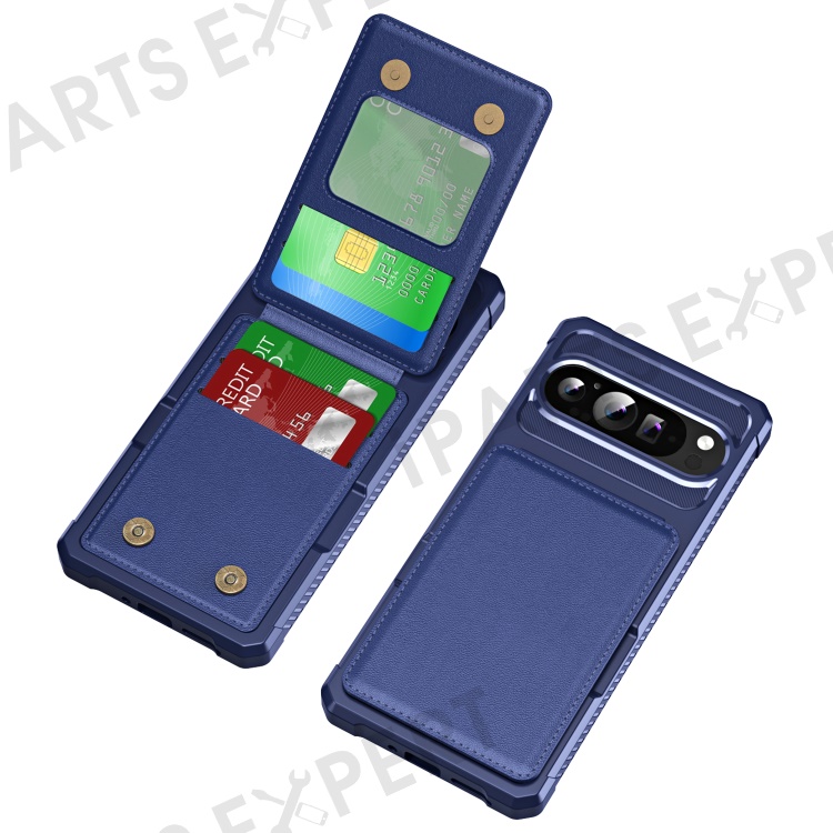 ZM11 For Google Pixel 9 Pro XL Case Card Slot Kickstand PU+TPU Phone Cover - Dark Blue