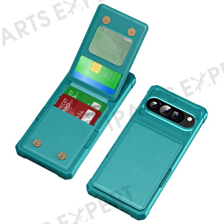 ZM11 For Google Pixel 9 Pro XL Case Card Slot Kickstand PU+TPU Phone Cover - Green