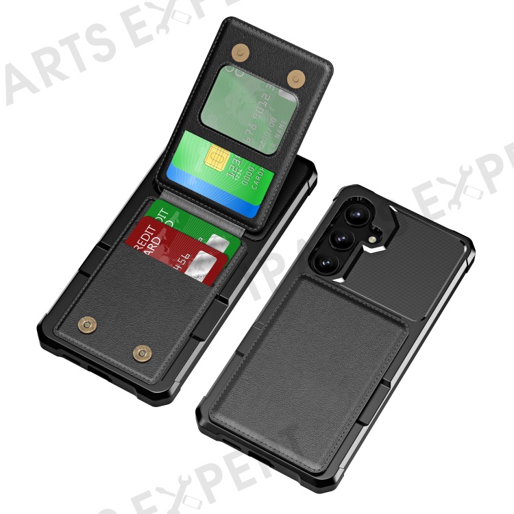 ZM11 For Samsung Galaxy S23 FE Case Kicsktand Card Holder Leather+TPU Phone Cover - Black
