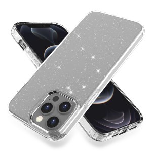 Gradient Epoxy TPU Cover for iPhone 15 Pro Max Glittering Sequins Anti-Scratch Phone Case with Slim Lanyard - Black